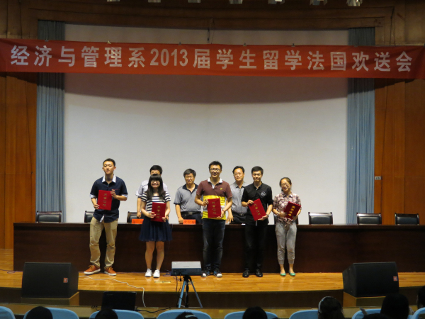首先,贾书记宣读了对尹梦悦等六名同学表彰决定,希望同学们在法国期间再接再厉,认真学习,全面提高综合素质。紧接着给5名同学颁发了获奖证书。随后尹梦悦等三名同学结合自己的学习情况,就出国的动机、语言的重要性和学习经验与同学们进行了深入的交流,希望同学们能够出国去欣赏一下异域的风光,去体验全新的生活,为美好的未来努力拼搏。