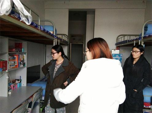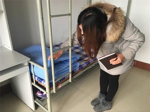 此次检查针对学院各个年级,分组同时展开。检查的主要内容包括宿舍卫生、安全隐患、英寝情况等,重点整理宿舍内务、清理卫生间、阳台以及卫生死角。同学们积极配合检查工作,每间宿舍都打扫的干净整洁。检查过程中,老师们十分关心同学的学习和生活状况,并进行了亲切的交谈,提醒同学们注意宿舍学风建设、用电安全、防火防盗等问题。