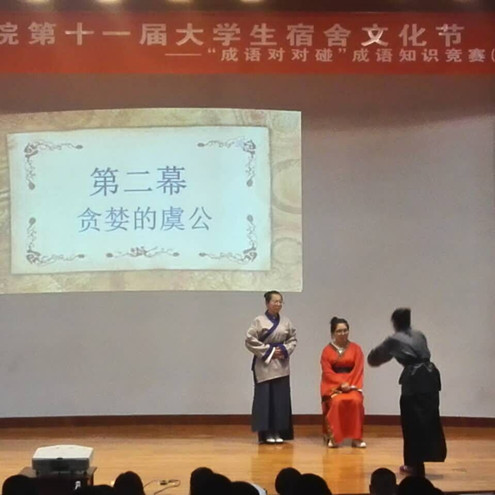 本次活动旨在建设集知识性、文化性、趣味性于一体的学习型宿舍。决赛共分为牛刀初试、成语接龙、风采展示三个阶段,我院参赛选手面对少见的成语问题也沉着应对,充分展现了我院学生优秀的文化底蕴。比赛过程中安排的歌舞表演,缓解了紧张的比赛气氛,更带给观众们耳目一新的感觉。台下观众掌声不断,为选手们的精彩表现呐喊助威,赛场气氛热烈。最后我院参赛选手以优异的成绩获得了本次比赛的二等奖。