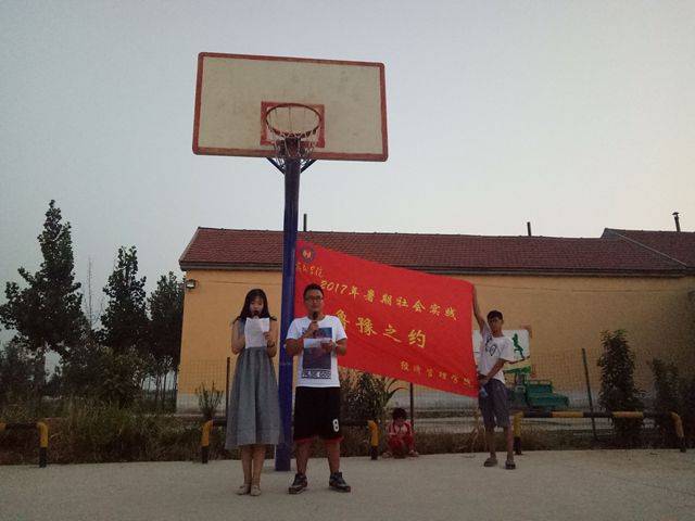 上午8时,一部分队员继续在村会议室辅导孩子们的功课。社会实践活动即将结束,为了奖励孩子们在辅导过程中的优异表现,队员们将孩子们分为四组,各小组进行问答积分,并根据积分排名给小朋友发放奖状,黑色中性笔,还有笔记本等奖品。辅导结束后,每位队员向孩子们表达了美好的祝愿并感谢他们四天来的积极配合,鼓励他们好好学习,用实际行动实现自己的梦想。其余成员在队长赵鲁豫的带领下,积极筹备实践活动期间最重要的一项工作——汇报演出晚会。中午稍做休息,队员和村民们开始对晚会的节目进行彩排。晚上7时,汇报演出晚会正式开始,晚会由社会实践队员孙政辉和王瑞琼主持。“鲁豫之约”三下乡团队的队员们给村民们带来了充满青春活力的舞蹈、歌曲,村民们也把这几天辛苦排练的广场舞在晚会上进行了展示,大家精彩的表演赢得了观众们的阵阵掌声。惠民县麻店镇团委书记万福伟,麻店镇文化站站长杜太波,麻店镇办事处主任宋帅,麻店镇自新王村书记应邀观看了整场晚会。