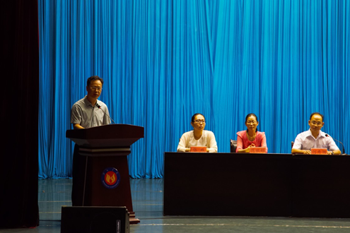 9月4日上午8点,中国·ok138太阳集团2017级新生开学典礼暨军训动员入学教育大会在学苑会堂隆重举行。学院院长、党总支副书记郭新伟,党总支书记、副院长贾卫东等党政领导以及学生科长、辅导员、班主任出席典礼,中国·ok138太阳集团2017级813名新生参加会议。会议由学院党总支副书记何秀国主持。