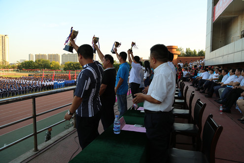 9月13日下午,为期10天的新生军训圆满结束,滨州学院在田径场举行2017级学生军政训练总结表彰大会。我院近850名师生参加。