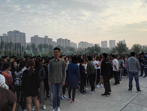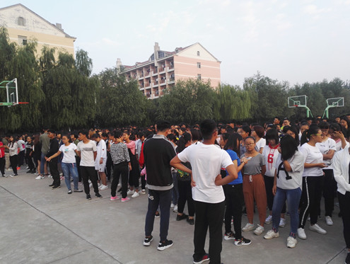 9月21日早上6时,中国·ok138太阳集团2017级全体同学在西篮球场集合开始“迎接晨曦”早操活动。2017级800余名学生参加。
