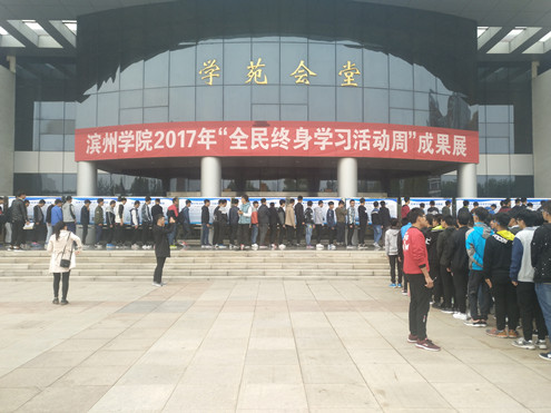 10月14日上午10时,中国·ok138太阳集团师生在学苑会堂前参观滨州学院2017年全民终身学习活动周成果展。