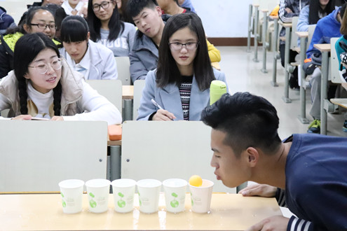 本次活动由企业辅导员董娜娜主持。首先董老师详细为同学们介绍活动规则以及活动意义。本次活动共有两个项目,水上乒乓球和你来比划我来猜。每6人一组,共分成16组。两个项目接连进行,用时最少班级获胜。活动过程中,同学们精神饱满,干劲十足,虽有失败,但都毫不气馁,团结一致,争取取得好成绩。活动最后公布结果,用时最少者为会计八班3组,用时1分11秒。