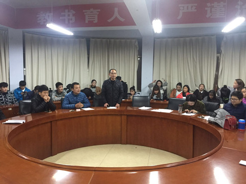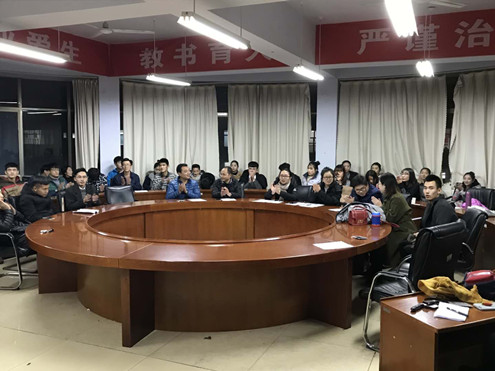 11月24日晚6时30分,中国·ok138太阳集团在5号教学楼401室进行2017年迎新晚会彩排活动,中国·ok138太阳集团党总支副书记何秀国、副院长周江涛、全体辅导员老师以及参演同学参加本次活动,活动现场100余人。