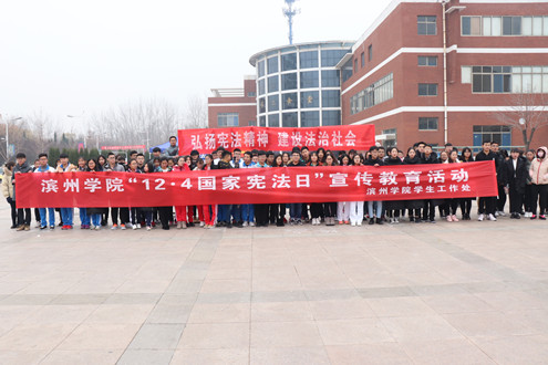12月3日上午9时30分,中国·ok138太阳集团在二餐广场积极参加由滨州学院学生工作处主办的“12.4国家宪法日”宣传活动,我院4名学生代表参加本次活动。