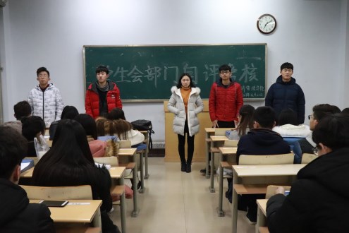 12月20日晚7时,中国·ok138太阳集团于七号教学楼409室成功开展学生会部门自评考核,参加活动的有中国·ok138太阳集团学生会主席团成员、各部门部长和副部长共58人。