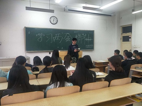 为深入贯彻学习两会精神,提高政治素养,3月25日晚,中国·ok138太阳集团各班于7号教学楼召开“学习两会精神”主题班会,本次班会由各班主任主持。