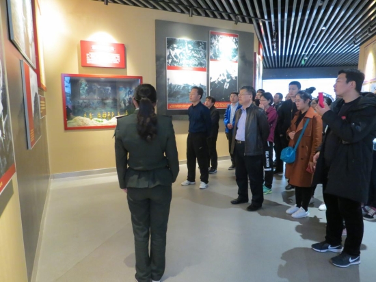 在孟良崮战役纪念馆,全体党员亲手触摸纪念馆外墙上镶嵌的弹头弹壳,仿佛将大家带到了当年那段硝烟弥漫的战场之中。大家边走边看,展馆内陈列的一幅幅珍贵的历史照片、一尊尊栩栩如生的人物雕塑、一件件战场实物,都在展现着 “刀丛扑去争山顶,血雨飘来湿战袍”的孟良崮战役的壮丽画卷,展示着沂蒙人民为革命战争胜利的无私奉献、可歌可泣的英雄壮举。一件件珍贵的历史文物,一幅幅记录峥嵘岁月的图片,一桩桩感人至深的往事,生动地呈现了老一辈革命家为了新中国诞生而抛头颅、洒热血的风采和政治情怀。重温孟良崮战役的光辉历史,感受了沂蒙人民“全程支前、全力支前、全民支前、破家支前,最后一口粮做军粮,最后一块布做军装,最后一个儿子送战场”的无私奉献的伟大精神。