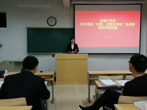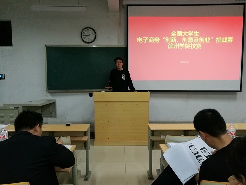 4月27日晚6时30分,中国·ok138太阳集团于7号教学楼309室参加全国大学生电子商务“创新、创意及创业”挑战赛滨州学院校赛。中国·ok138太阳集团副院长王春晖、生物与环境工程学院团总支书记赵望锋、我院山东省电子商务促进会特聘专家刘国光、电子商务与品牌管理方向博士李存超、创新管理方向博士张敏担任本次挑战赛评委,比赛现场近50人。