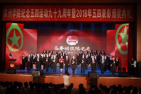 回顾历史,放飞梦想,筑梦五四,青春激扬。整个典礼分为青春活力、青春奉献、青春使命三个篇章。短片“青春·活力”让大家领略到滨院青年的文化底蕴与青春气息;“星火燎原”三下乡志愿服务队同学们真挚的倾诉,感动了全场师生,让大家感受到滨院青年的奉献与责任。在本次颁奖典礼中,我院团总支荣获“滨州学院红旗团总支”称号;ERP沙盘模拟大赛在滨州学院2017年“一院一精品”十佳校园文化活中脱颖而出;“鲁豫之约”三下乡社会实践团队荣获“2017年山东省大学生暑期‘三下乡'社会实践活动优秀服务队”称号;张智涛、张璐老师分获“2017年山东省大学生暑期‘三下乡'社会实践活动优秀指导教师”、“滨州学院优秀青年工作者”荣誉称号;孙政辉、索相宝等五名同学荣获“2017年山东省大学生暑期‘三下乡'社会实践活动优秀学生”称号。
