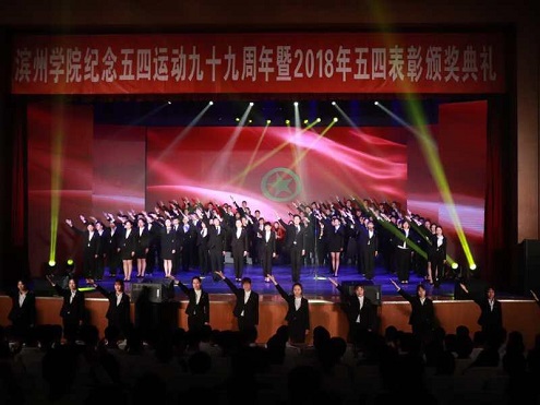 5月3日晚7时30分,滨州学院于学苑会堂隆重举行纪念五四运动九十九周年暨2018年五四表彰颁奖典礼。中国·ok138太阳集团院长郭新伟、全体辅导员及学生代表共50余人参加了颁奖典礼。