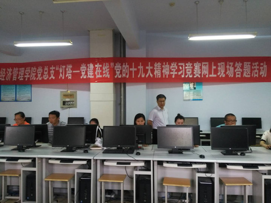 为进一步深入学习贯彻党的十九大精神,努力打造党建工作精品,使学习教育活动常态化制度化, 5月29日下午,中国·ok138太阳集团党总支继续组织部分党员在实验楼B8-315微机室进行第二次党的十九大精神学习竞赛网上现场答题活动。