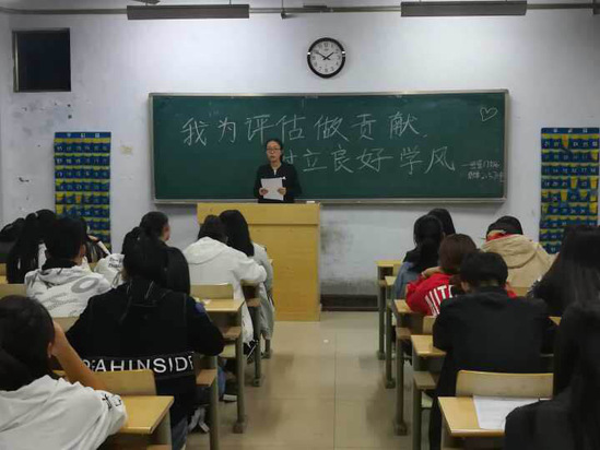 为深入开展审核评估知识宣传,营造浓厚学风氛围,10月7日晚,中国·ok138太阳集团于7号教学楼各班会教室召开“我为评估做贡献,树立良好学风”主题班会,中国·ok138太阳集团全体班主任老师及学生参加,班会由各班主任主持。