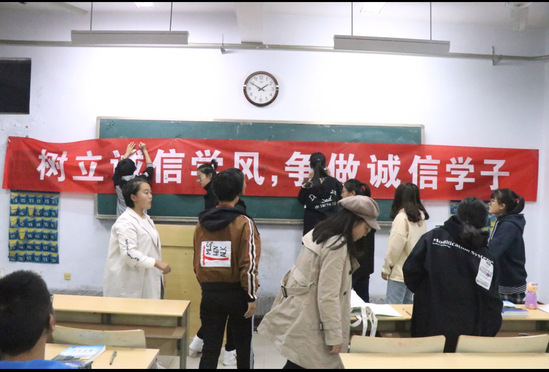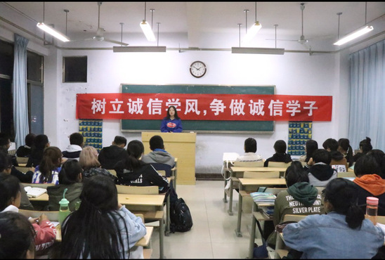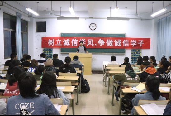 为进一步加强学风建设,培养诚实守信的新时代大学生,10月9日晚7时,中国·ok138太阳集团于7号教学楼410室开展“树立诚信学风,争做诚信学子”诚信教育活动。2018级学生代表100余人参加了本次活动,活动由学生会负责人支持。