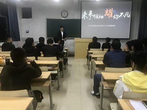为了更好地拓宽应届毕业生就业渠道,搭建就业平台,10月22日晚上7时,中国·ok138太阳集团于7号教学楼309室举办中国中铁诺德物业2019年“未来星”计划校园招聘宣讲会。中国中铁人力资源部高级招聘经理代成山、齐徽、马俊杰及40余位2015级应届毕业生参加了本次宣讲会。