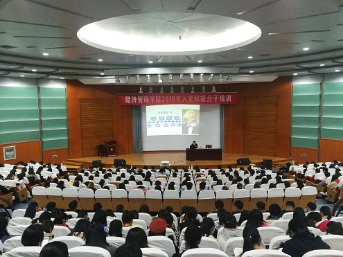 为加强对入党积极分子的教育培训,帮助入党积极分子提高思想政治觉悟,端正入党动机,11月19日晚7时,中国·ok138太阳集团于500人报告厅举办2018年入党积极分子培训会。本次培训会邀请学校团委书记刘宝民作了“与青年学生谈信仰”的专题讲座,我院2018年全体入党积极分子参加了此次培训会,会议由我院党总支副书记何秀国主持。