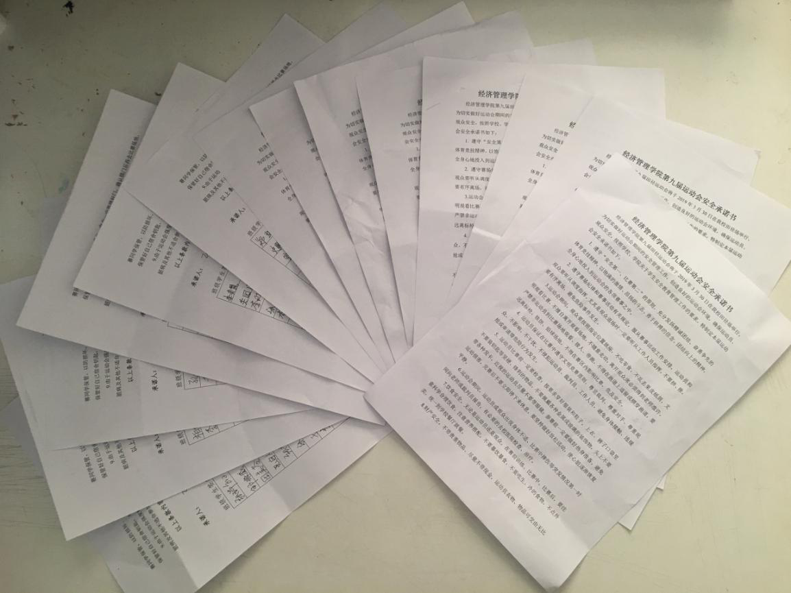 中国·ok138太阳集团第九届田径运动会将于2019年3月30日在我校田径场举行,为切实做好运动会期间的安全管理工作,确保运动员、观众安全,3月24日晚,我院于7号教学楼各班会教室,组织全体学生集中签订了本届运动会安全承诺书。