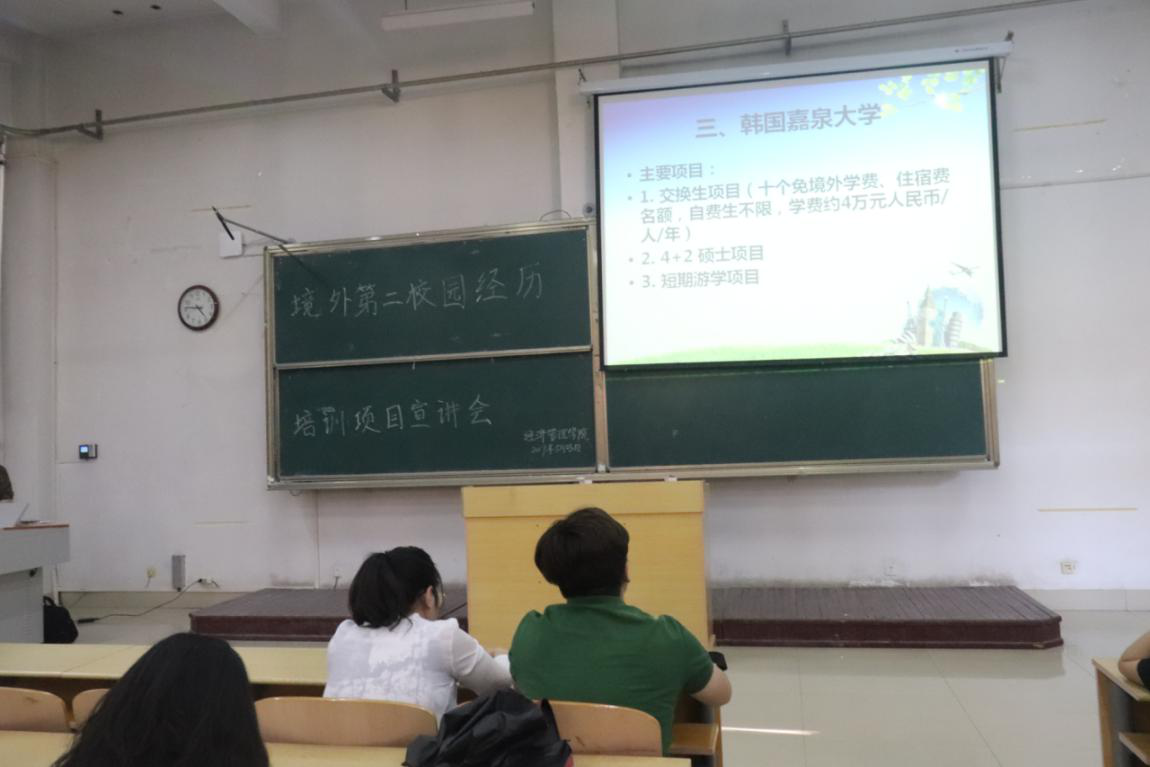 宣讲会上,李玉婷老师首先对我校的国际合作交流情况作了简单介绍。接着,李老师从项目时间、项目人数、项目内容和项目费用四个方面,分别介绍了英国亚伯大学、韩国嘉泉大学、马来西亚泰莱大学、精英大学、菲律宾德拉萨大学等培训项目。此外,李老师就出国学习前的准备工作作了详细说明,鼓励同学们结合自身实际情况,以有益于学业生涯为出发点,争取出国交流学习,全方位提升自己。最后,在互动交流环节,李老师对于同学们的提问给予了生动、细致的回答,气氛热烈。