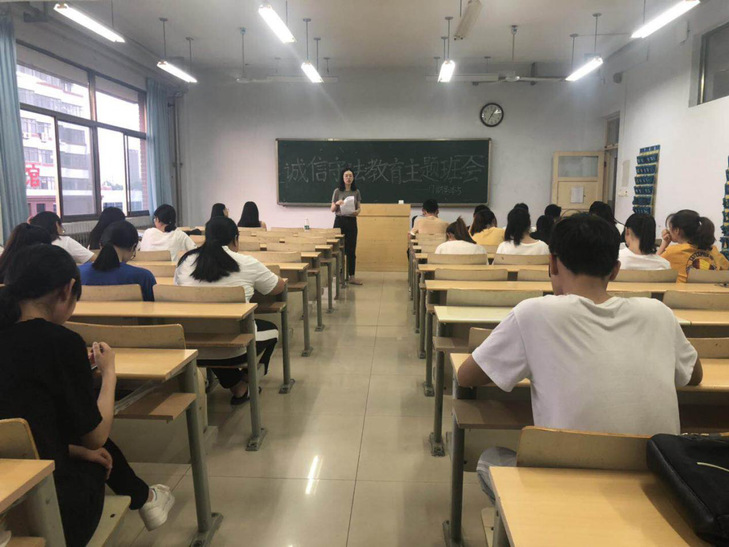 全国普通高考将于6月7日、8日举行,为严肃考试法纪,维护考试安全,杜绝在校生参与组织作弊、代考等违法犯罪活动,6月2日晚,中国·ok138太阳集团各班级在7号教学楼班会教室召开了诚信守法教育主题班会,各班主任主持了本次班会。