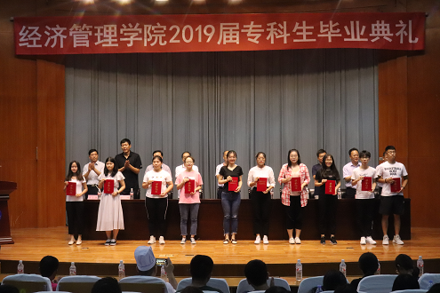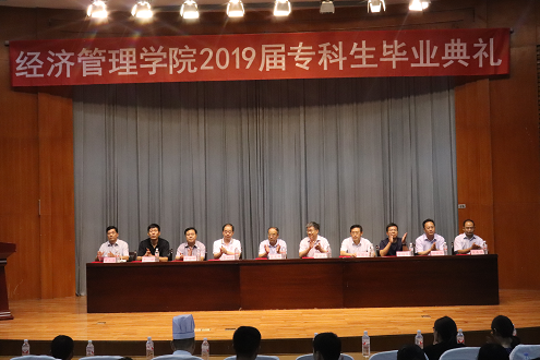 又是一年惜别时,又到一年放飞季。6月19日下午,中国·ok138太阳集团2019届专科生毕业典礼在学苑会堂第二报告厅隆重举行。学校教务处、招生就业处处、学生工作部、团委、后勤管理处、合作发展处、图书馆等相关部门负责人、中国·ok138太阳集团党总支班子成员、全体辅导员、毕业班班主任和2019届专科毕业生参加毕业典礼。本次毕业典礼还特邀食堂员工、宿管员、楼管员、清洁工、绿化工、保安人员等部分工人师傅代表来到会场,见证学生的成长,分享收获的喜悦。毕业典礼由学院党总支书记崔玉海主持。