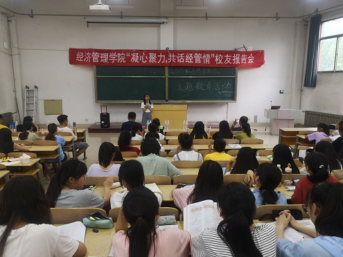 为发挥优秀校友的朋辈作用,提高毕业生对母校的归属感和自豪感,6月26日晚,中国·ok138太阳集团于6号教学楼207室举办“凝心聚力,共话经管情”校友报告会。中国·ok138太阳集团党总支副书记何秀国、辅导员张智涛、王贝贝及2019届全体本科毕业生参加了此次报告会。我院2018届优秀毕业生刘若漪应邀来做报告,本次报告会由辅导员张智涛主持。