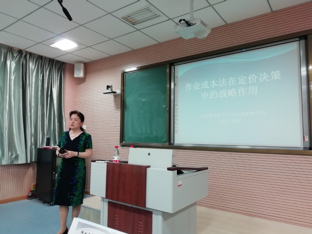 周教授的授课主要有两个专题:一是作业成本法在定价决策中的战略作用,一是战略绩效考核。周教授结合授课内容,大量使用精选案例(主要是航空公司案例),同时介绍了会计在信息背景下的发展,以及管理会计的重点领域。讲授中使用的案例,包括波音和 GE 公司的案例,西安飞机制造集团公司成本核算与定价决策的案例,AMECO 公司的案例等,都是来自著名的案例库,不少是北航经管学院自编案例,并获得全国案例奖。