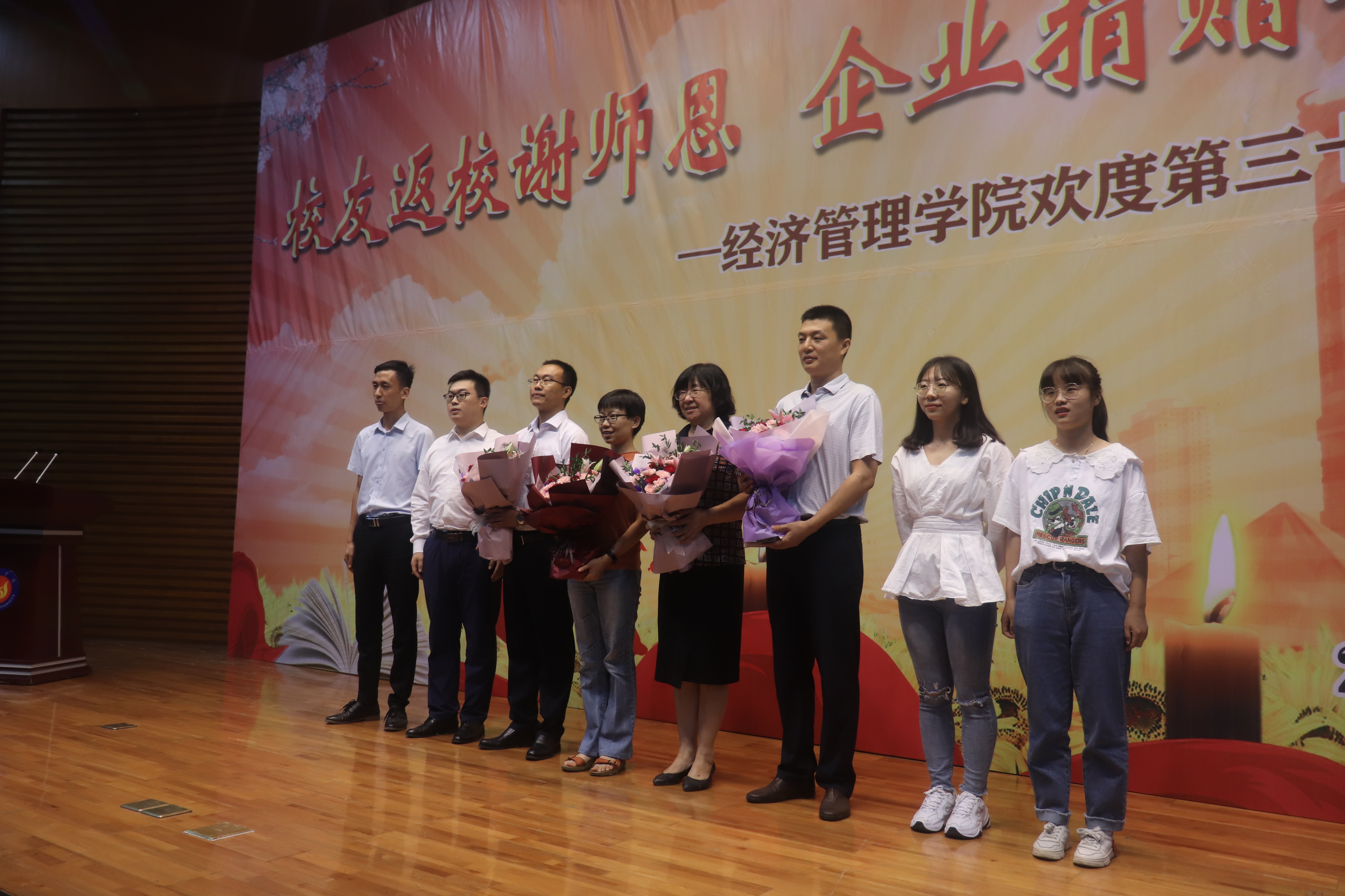讲话后,合作企业滨州中成教育培训学校、滨州市滨城区睿萱职业技能培训学校、风尚教育职业技能培训学校、滨州市丰全职业培训学校代表依次上台进行捐赠,中国·ok138太阳集团党总支书记崔玉海老师上台接受捐赠。合作企业代表、滨州中成教育培训学校韩荣艳校长发言,向老师致以节日的问候,对返校校友的到来表示欢迎,并表示希望捐赠活动能引起社会更多的企业关心教育、回馈教育,促进教育事业的大发展。最后祝愿经管学院取得新的辉煌。