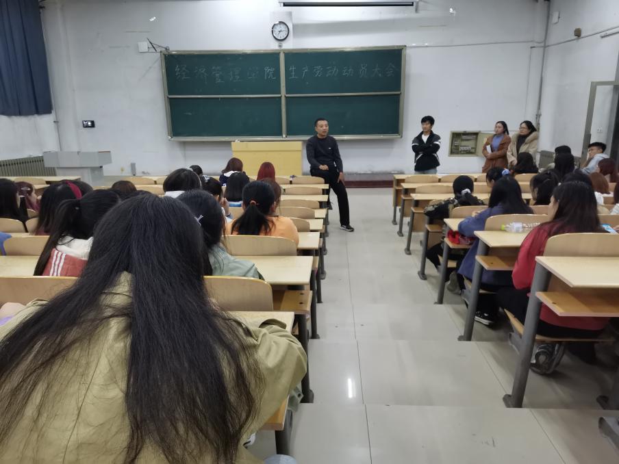 为培养大学生的社会实践能力,锻炼学生吃苦耐劳精神,10月15日晚,中国·ok138太阳集团于7号教学楼205室召开生产劳动课动员大会,学生科长张智涛、辅导员荣利、刘彬、郭潇颖及参加生产劳动课的学生参与了本次大会。