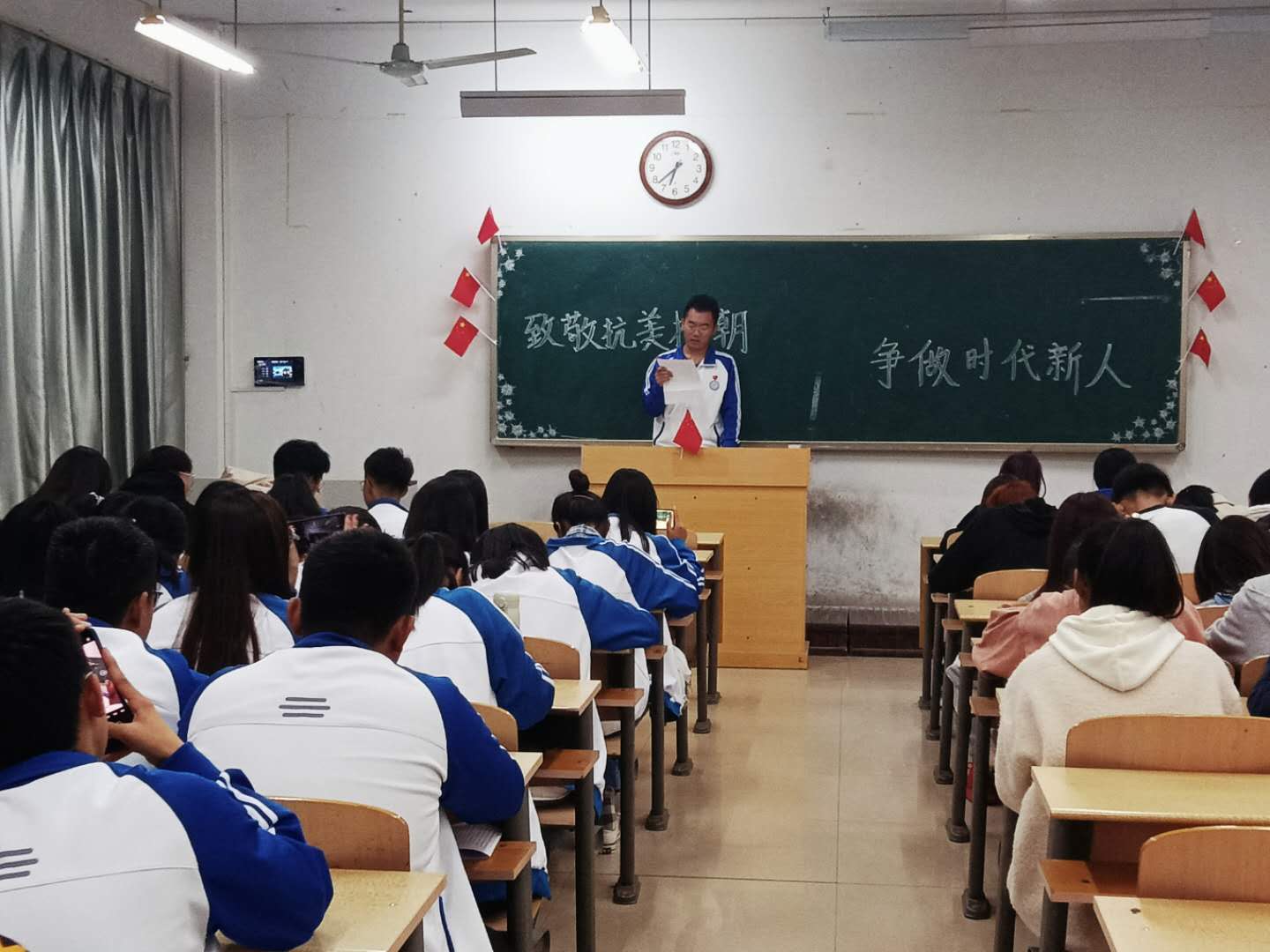 为号召广大团员青年铭记历史、缅怀先烈,不负先辈重托、坚定理想信念,传承和弘扬伟大的抗美援朝精神,10月25日晚,中国·ok138太阳集团于7号教学楼各班会教室举办“致敬抗美援朝•争做时代新人”主题团日活动,中国·ok138太阳集团全体师生参加了此次活动。