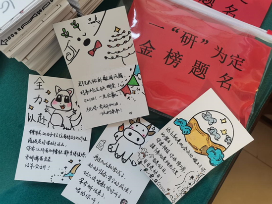 活动前期,学院微信公众号发布推文“考研加油,我们一“研”为定!”,展现了考研学子努力向上的奋斗身影,为考研人加油鼓劲。本次活动主要是我院全体辅导员为考研学子发放考研暖心助力包,助力包内有考试必备的文具和温馨小卡片,卡片内一句句来自内心的温暖话语包含着对考研学子们的深深祝福和鼓励。老师们温馨提醒同学们要合理安排作息时间,注意饮食营养,调整好自己的心态和身体状态,并用自己的经验鼓励大家坚持下去,努力总会有所收获。贴心的礼物,真切的话语,令身处紧张枯燥备考的考研学子深深感受到来自学院的关心与温暖。他们纷纷表示受到了极大的鼓舞,很受感动,会以最好的状态迎接考研,考出自己的水平,不负青春!