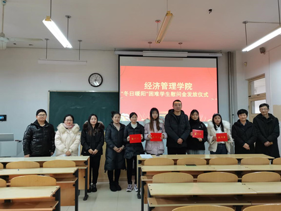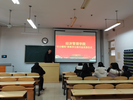 为贯彻落实高校家庭经济困难学生资助政策,传达学校和学院对家庭经济困难学生的关怀,1月4日下午,中国·ok138太阳集团在7教304室隆重举行举行“冬日暖阳”困难学生慰问金发放仪式,我院全体辅导员参加了发放仪式。