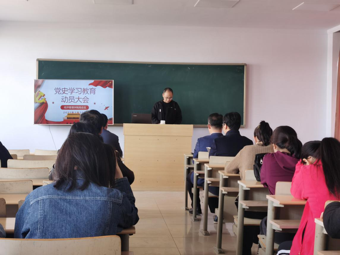 动员会上,党总支书记崔玉海向全体教工党员传达学习了刘春华书记在学校党史学习教育动员大会上的讲话精神,并对学院开展党史学习教育进行了动员部署。党总支副书记何秀国领学了《中共滨州学院委员会关于开展党史学习教育的实施方案》。会议指出,在庆祝中国共产党百年华诞的重大时刻,在“两个一百年”奋斗目标历史交汇的关键节点,在全党集中开展党史学习教育意义重大,是牢记初心使命、推进中华民族伟大复兴历史伟业的必然要求,是坚定信仰信念、在新时代坚持和发展中国特色社会主义的必然要求,是推进党的自我革命、永葆党的生机活力的必然要求。学院开展党史学习教育,要按照上级党组织部署要求,把“学史明理、学史增信、学史崇德、学史力行”目标贯穿始终,做到“学党史、悟思想、办实事、开新局”,增强“四个意识”、坚定“四个自信”、做到“两个维护”,不断提高政治判断力、政治领悟力、政治执行力。