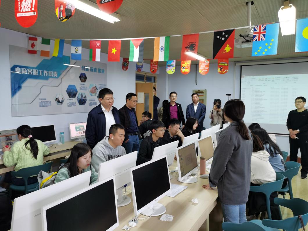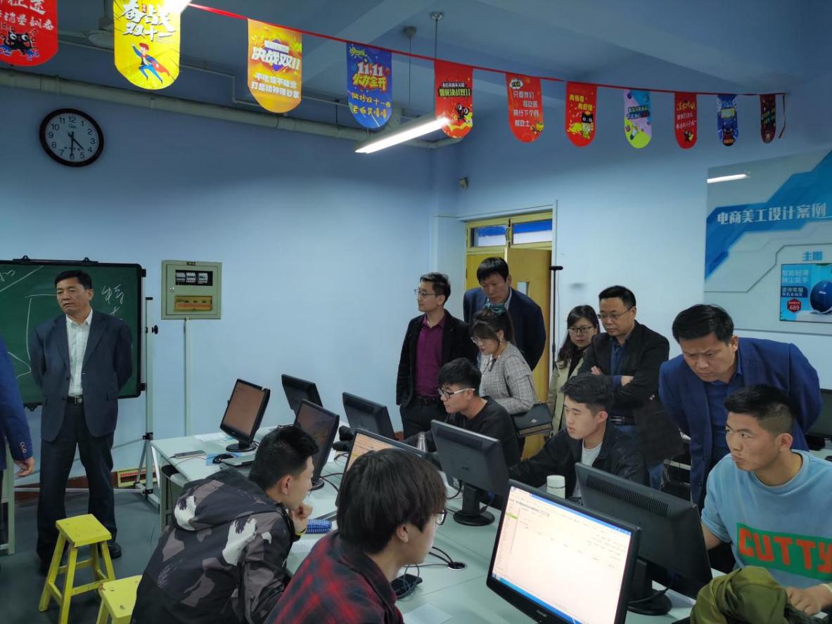 中国·ok138太阳集团党总支书记崔玉海详细介绍了学院产教融合、校企协同、课证融通的工作进展情况,并引导考察团一行重点参观了我院大三、四年级学生正在进行的社会实践教学环节——网络创业课程的现场教学情况。