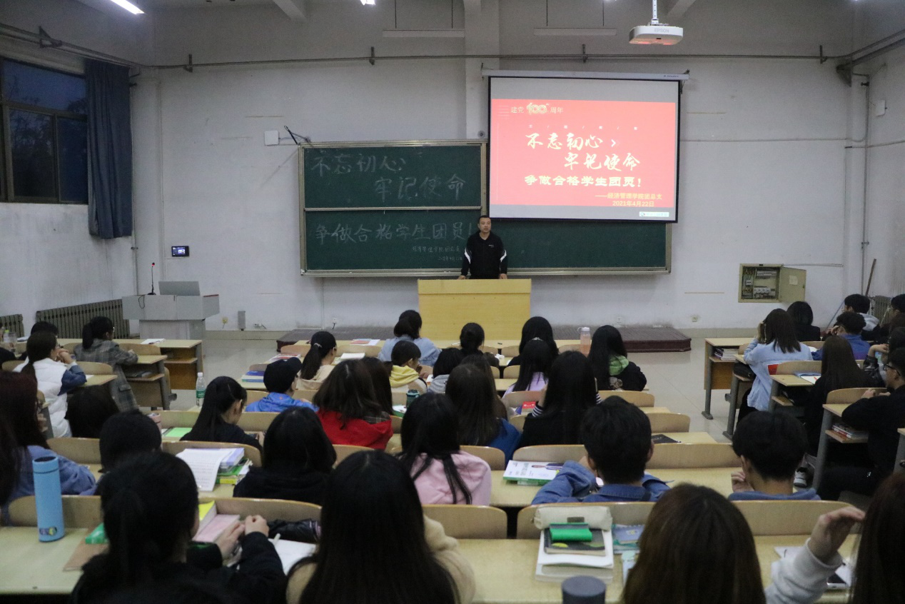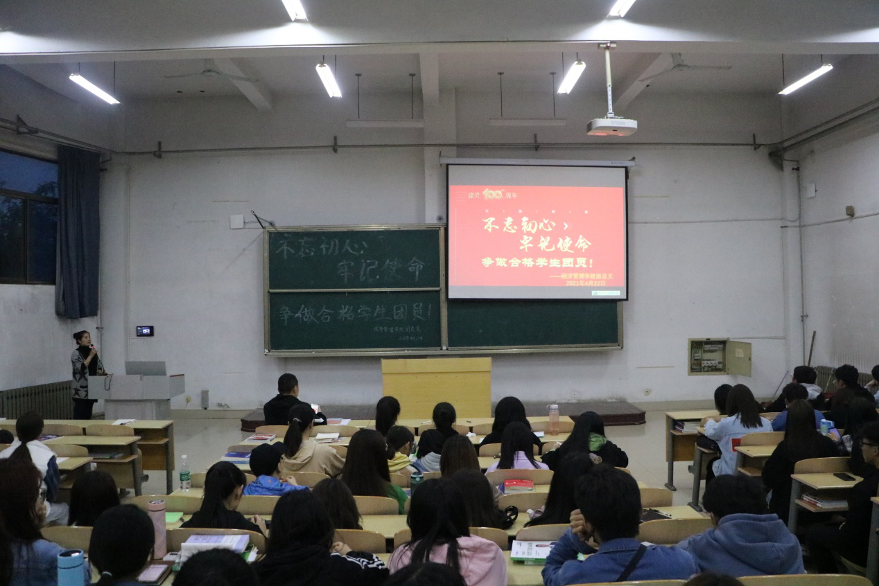 党有号召,团有行动。为进一步深入学习领会习近平总书记在党史学习教育动员大会上的重要讲话精神,助力全院团员青年坚定理想信念,提高团学干部的思想政治素质和工作能力,4月22日晚,中国·ok138太阳集团团总支在7教205室举办“不忘初心、牢记使命,争做合格学生团员”主题团课活动。主题团课由团总支书记张智涛老师主讲,我院全体团干部、20级优秀入党积极分子和2021年上半年的60名学生党员发展对象参加了团课学习,本次团课活动由团总支副书记张娜娜主持。