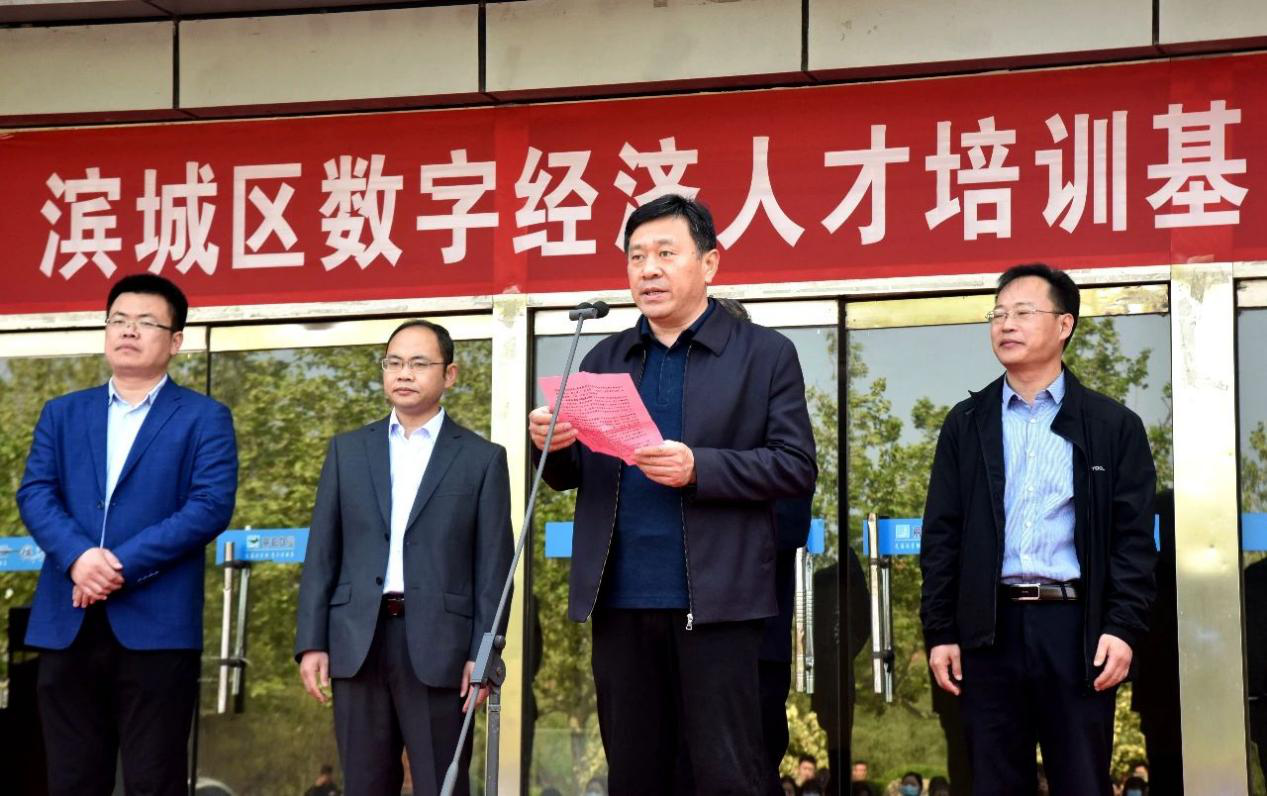 接下来,郭新伟与朱庆林共同为“滨城区数字经济人才培训基地”揭牌。
