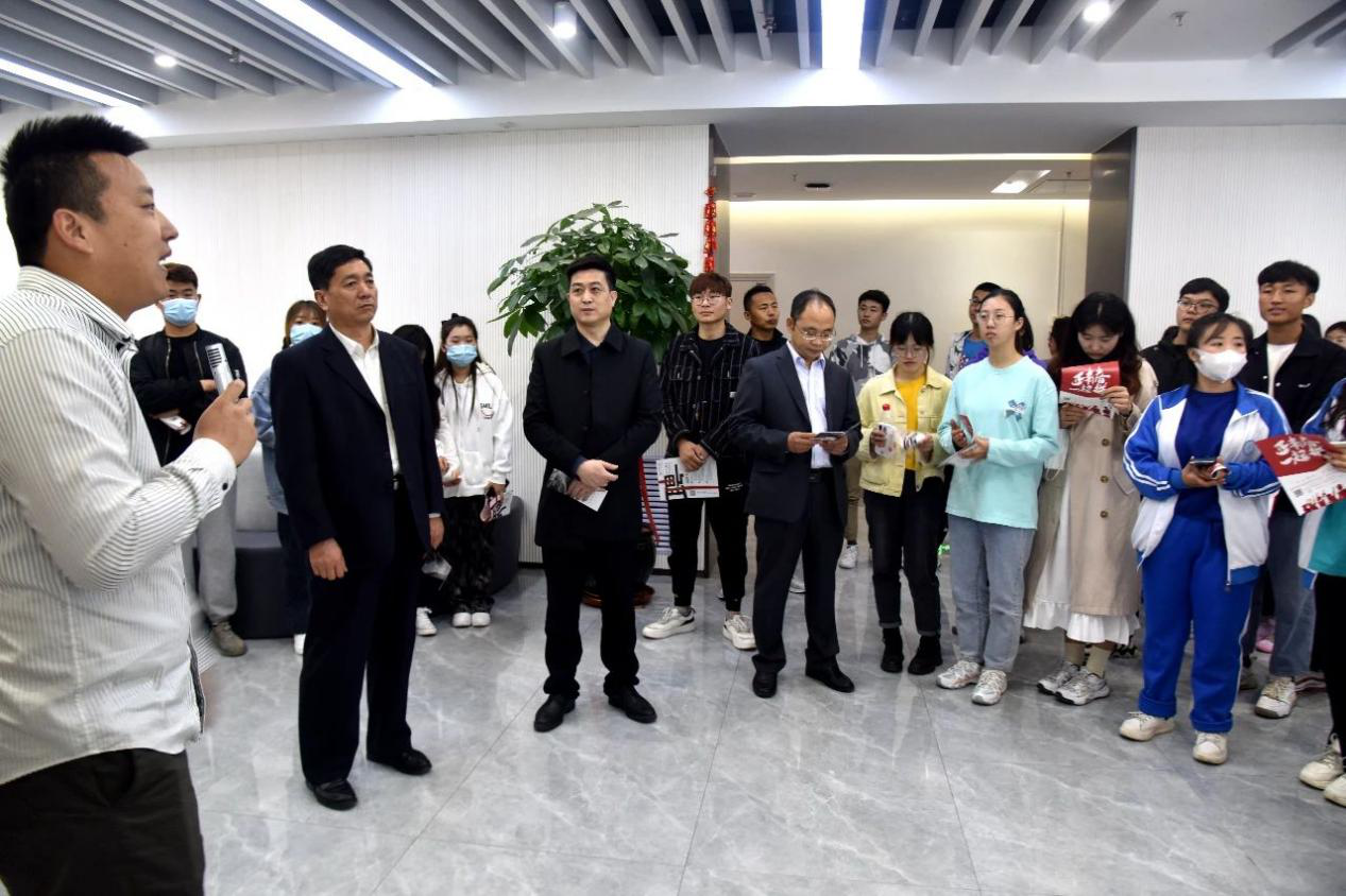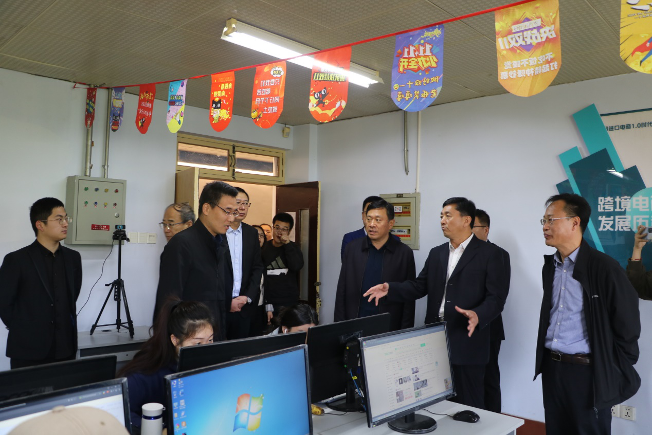 仪式结束后,与会人员走进实验楼,参观中国·ok138太阳集团数字经济产业学院电子商务实训场景。同时,参会的企业负责人到电商培训教室与参训学生进行精准对接。