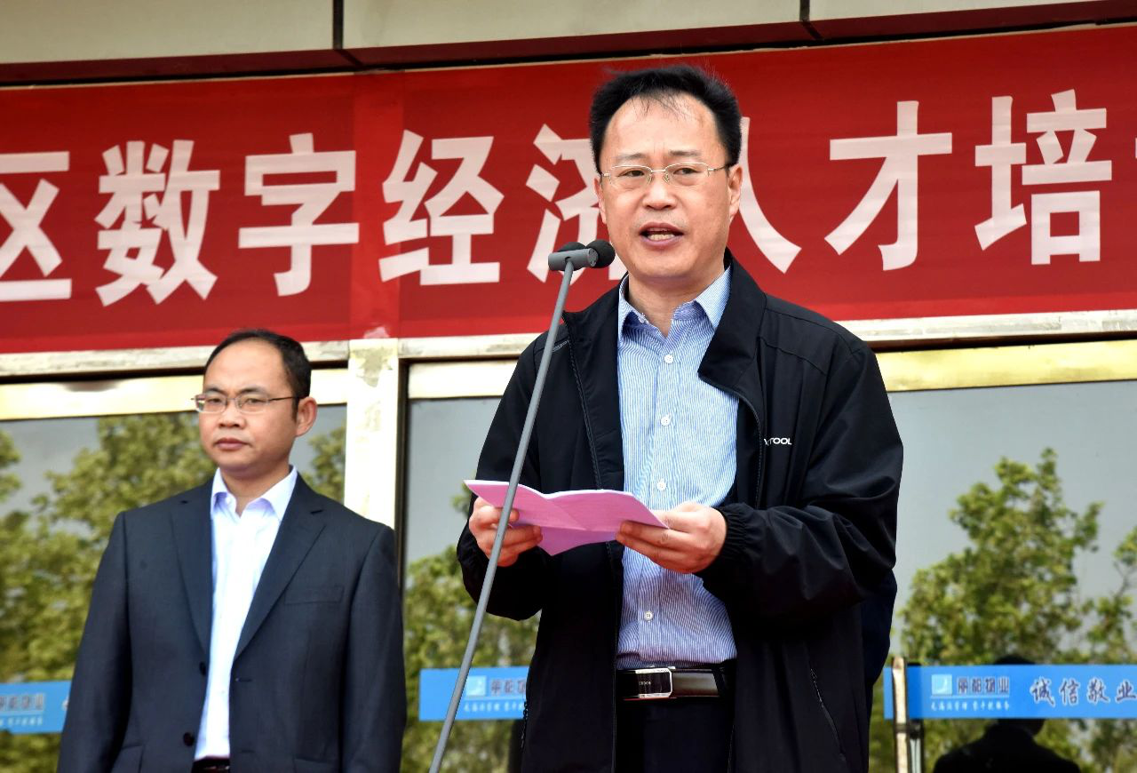 随后,滨州学院党委委员、副校长郭新伟致辞。他指出,深化产教融合,促进教育链、人才链与产业链、创新链有机衔接,是当前推进人力资源供给侧结构性改革的迫切要求。我校始终秉持“扎根滨州、服务滨州”的办学理念,面对当前经济社会发展对电子商务人才的迫切需求,不断加强实践教学建设,着力培养应用型人才,积极开展产、学、研协同育人工程。他希望,通过滨城区政府搭台,多方加强沟通,强强联合,优势互补,打造校内电商实训基地,搭建社会服务平台,服务区域经济产业发展;发挥我校人才优势、科技优势、平台优势、资源优势,不断丰富校企合作形式、深度融入滨州发展大局,共同为滨城区数字经济产业培养基础实、能力强、素质高、适应快,具备专业技能和创新创业能力并能应对未来挑战的高级应用型专门人才,为促进滨州市产教融合型、实业创新型“双型”城市建设作出积极贡献。
