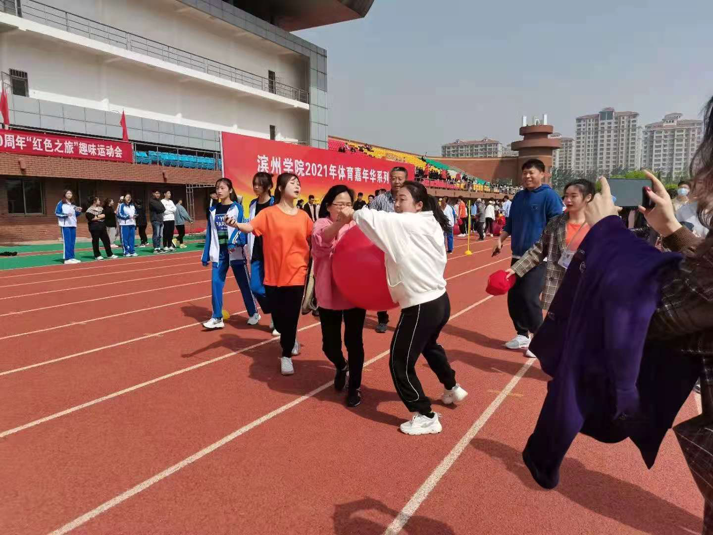 4月27日,滨州学院2021年体育嘉年华系列赛事活动启动仪式暨建党100周年“红色之旅”趣味运动会开幕式在田径运动场举行。中国·ok138太阳集团师生积极组队参加,并在趣味运动会中斩获教工组总分第五、学生组总分第四的佳绩。