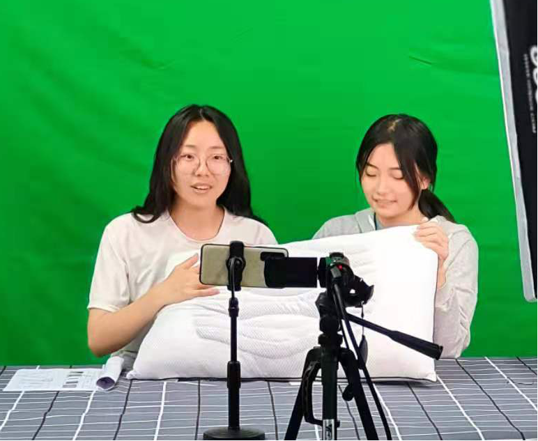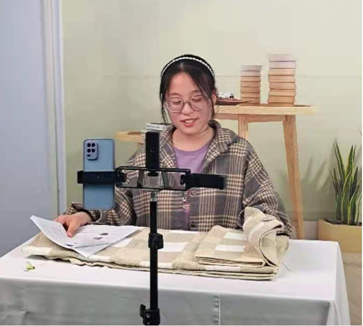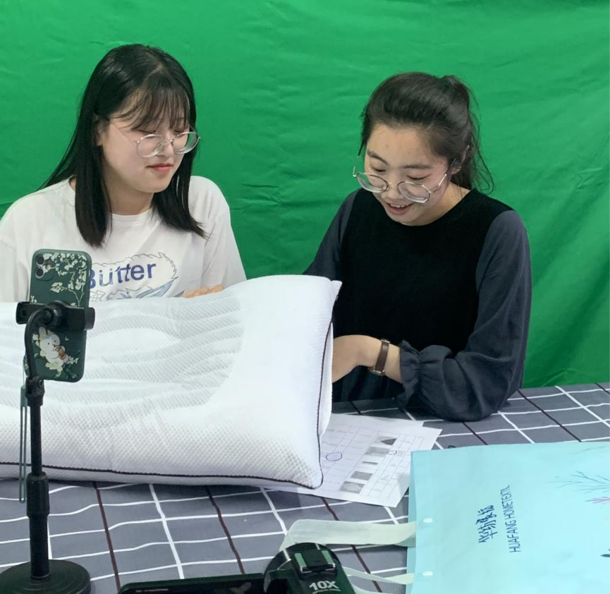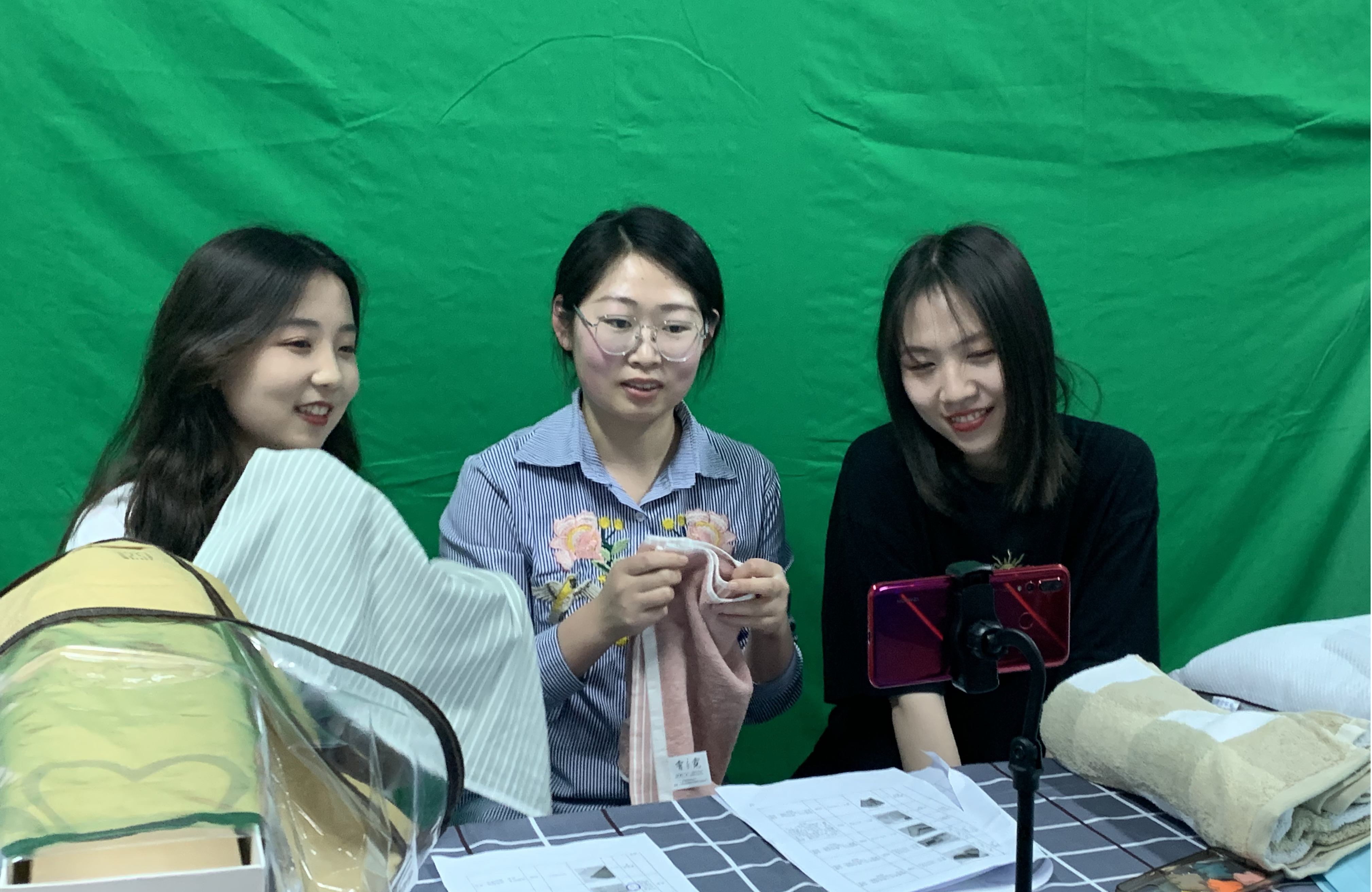 电子商务专业学生利用华纺股份有限公司产品进行直播大赛赛前训练