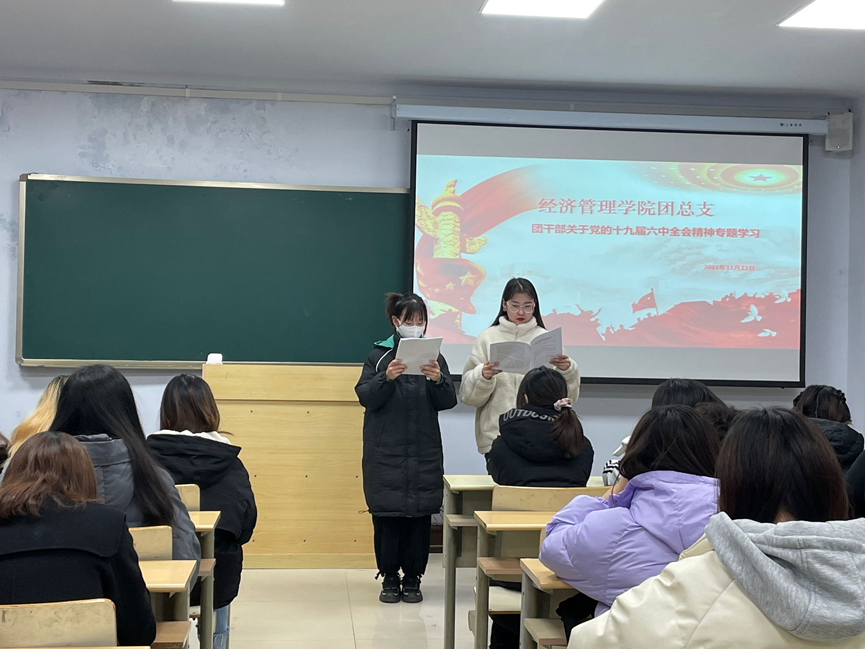通过这次党的十九届六中全会精神专题学习会议,让团干部深刻领会、准确把握了党的十九届六中全会精神,巩固了理想信念,增强了政治意识、大局意识、核心意识、看齐意识,坚定了中国特色社会主义道路自信、理论自信、制度自信、文化自信。经管学子将“请党放心 强国有我”的铮铮誓言转化为勇于奉献担当的实际行动,为实现第二个百年奋斗目标贡献青春力量。团干部纷纷表示今后会进一步深入学习党的十九届六中全会精神,励志奋进、扎实学习、勇于担当,用实际行动报效祖国。