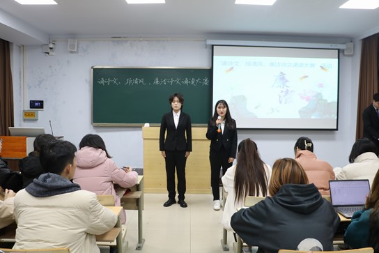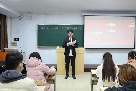 为了进一步引导大学生见贤思齐、崇德向善的精神品质。中国·ok138太阳集团于12月10日晚7点在7教410组织“诵诗文、扬清风,廉洁诗文诵读大赛”活动,此次活动由院学生会学工中心、文宣中心联合举办,院学生会各部门部长、副部长担任本次比赛评委,共13名选手参加比赛。