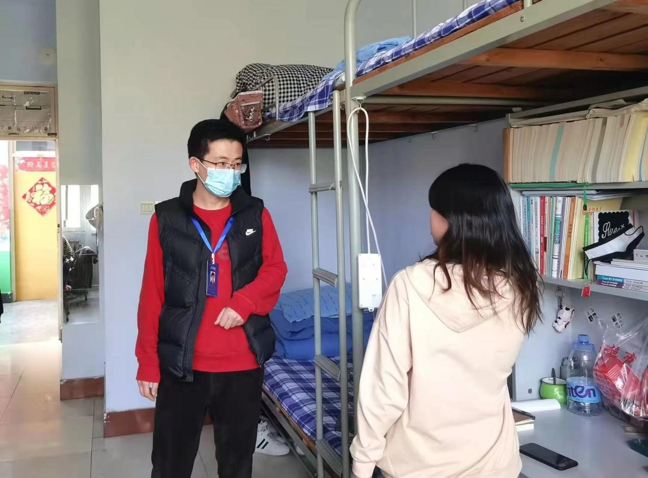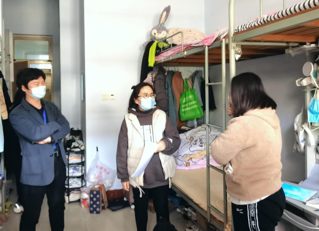 疫情防控期间,根据校园封闭管理的相关要求,学生们的“云学习”已经开展了两周多的时间。为进一步做好疫情防控工作,继续强化学生日常生活管理,保证学校线上教学秩序正常有序,3月30日下午,中国·ok138太阳集团党总支副书记于峰带领所有住校辅导员老师检查学生住宿情况和宿舍安全隐患。