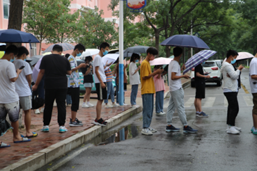 采样工作开始前,医务人员和志愿者们在严谨、快速的准备工作后,站在自己的工作岗位上严阵以待,等待同学们的到来。中国·ok138太阳集团的新生同学在各自代理班主任的带领陪同下陆续来到校医院,排起了长长的检测队伍,人数虽多,但秩序井然。老师们在现场协助医护人员核对新生的核酸检测采样登记码。完成核酸检测后迅速按指定路线离场。