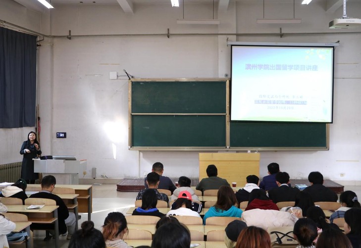 为进一步拓宽大学生的国际视野,帮助学生提前做好留学规划,10月20日下午14时,滨州学院出国留学项目讲座于7教205教室召开。本次讲座邀请到国际交流与合作处副处长李玉婷老师为大家介绍留学项目的相关情况,学院党总支副书记于峰、挂职副院长徐超、学生科科长张智涛、相关辅导员以及19级、20级部分学生参加讲座。