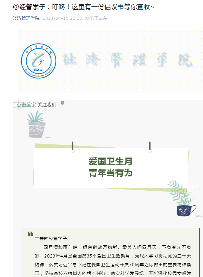 班会开展前夕,利用学院微信公众号等新媒体宣传阵地发布《中国·ok138太阳集团2023年校园爱国卫生月活动倡议书》,加强正面宣传,进一步激发广大学生参与爱国卫生月活动的热情。在班会上,班主任老师通过精心制作的主题教育班会PPT,向学生讲解了开展校园爱国卫生月系列活动的重要意义,普及了爱国卫生运动的历史和意义,并向同学们展示文明健康、绿色环保的生活方式,号召同学们即刻行动起来,争做“爱国卫生月,青年当有为”的先行者;积极参与活动,争做“爱国卫生月,青年当有为”的推动者;共享创卫成果,争做“爱国卫生月,青年当有为”的维护者;时刻谨记使命,争做“爱国卫生月,青年当有为”的支持者。随后,班主任老师也就加强劳动教育,开展宿舍内务卫生大扫除活动、学生宿舍文明公约大赛、预防传染病健康知识竞赛等具体活动内容作了讲解和要求。