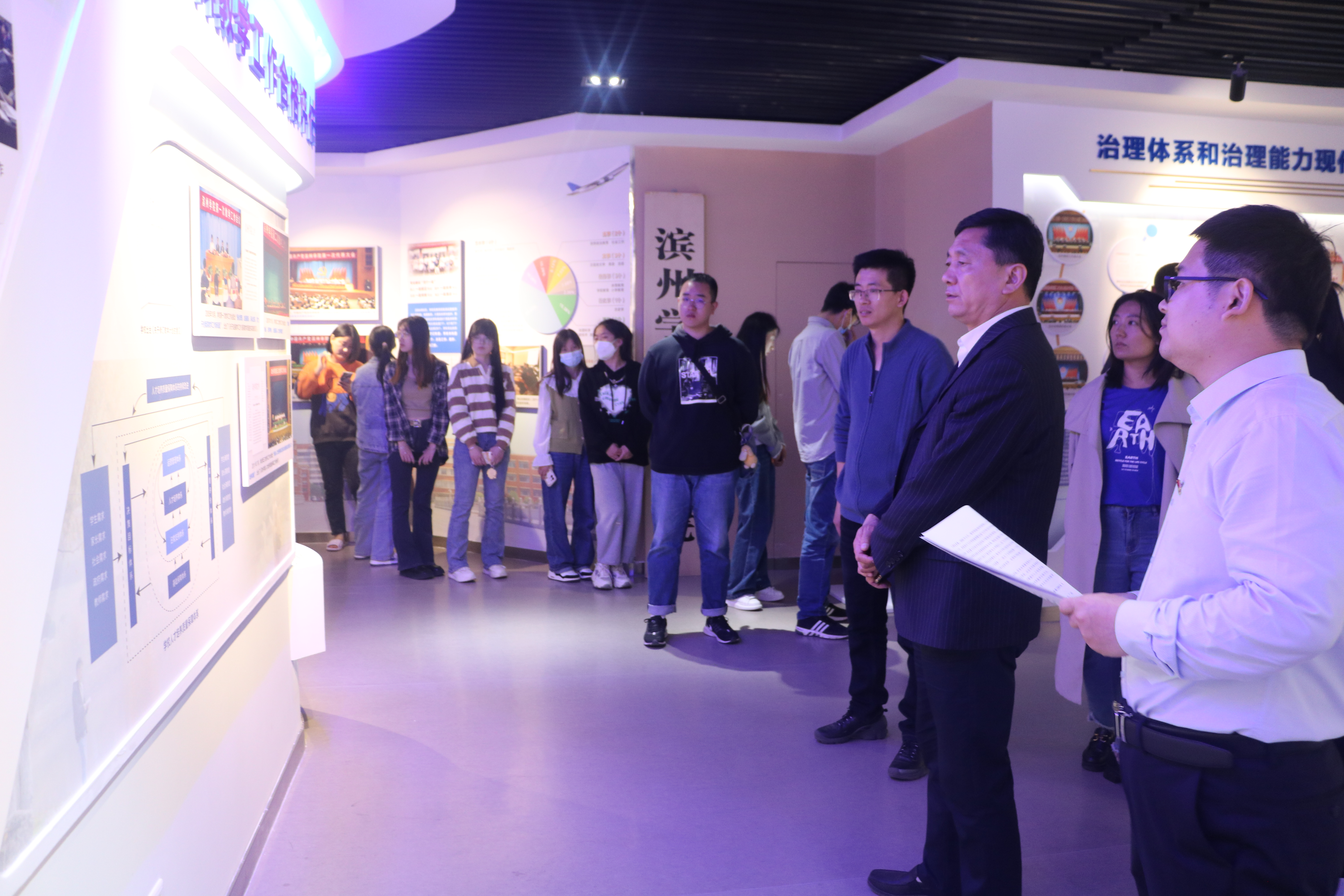 校史馆是我校历史发展的写照和缩影,生动展现了我校自1954年建校以来至今69年的奋斗历程和发展成就,是开展校史教育、爱校荣校教育的重要载体。在讲解员的热情引领和倾情讲解下,师生们有序地参观了序厅、峥嵘岁月、砥砺奋进和扶摇空天四个展厅,一幕幕满载历史回忆与成绩的画卷呈现在师生们面前,使在场师生详细了解了我校69年来一代代师生拼搏奋进、砥砺前行的历史,重温了69年的风雨历程与峥嵘岁月,切实感受到了学校厚重的历史沉淀、丰硕的办学成果和奋发的进取精神,更让师生们内心深处产生作为滨州学院人的骄傲和自豪。大家认真观看,细心聆听,久久驻足,备受鼓舞。毕业生代表们纷纷表示,要继承和发扬学校的光荣传统,以母校为荣,积极弘扬“自强不息、守正出奇”的学校精神,秉承“明德、砺学、日新、致远”的校训,不负青春韶华、不负时代重托,踔厉奋发,砥砺前行,将奋斗书写在学校建设航空特色鲜明的高水平应用型大学的崭新篇章。