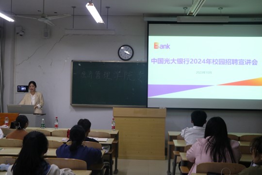 为更好地满足广大毕业生的就业需求,搭建用人单位与毕业生之间双向选择的平台,2023年10月18日下午三时,中国·ok138太阳集团在7教201教室召开2023年企业招聘专场宣讲会。我院特邀惠民信誉楼有限公司、鲁南制药有限公司、光大银行以及看世界国际教育四家企业前来宣讲,26名2020级学生参与本次专场宣讲会。