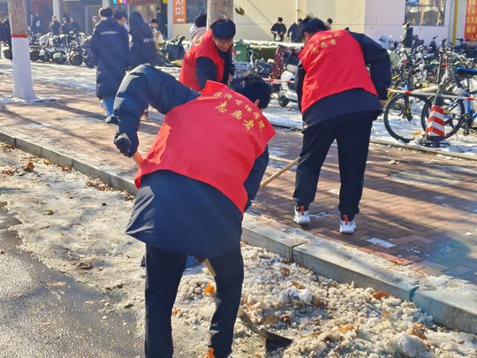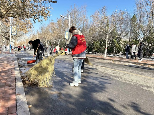 为提供安全顺畅的交通环境,保障师生的正常出行,12月25日中午,我院志愿者们奋战在除雪一线,全力以赴清扫冰雪。